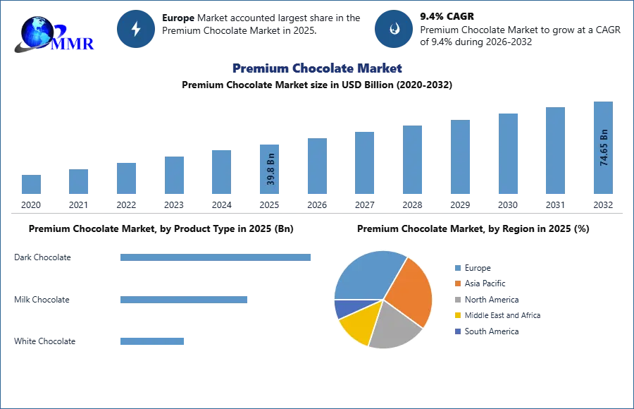 The global Premium Chocolate Market is witnessing a transformative growth trajectory, fueled by evolving consumer preferences, premiumization trends, and rapid innovation across the confectionery sector. Valued at USD 39.8 billion in 2025, the market is projected to expand at a robust CAGR of 9.4% from 2026 to 2032, reaching nearly USD 74.65 billion by the end of the forecast period.