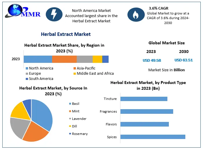 The global Herbal Extract Market is witnessing steady growth, fueled by increasing consumer inclination toward natural, plant-based products and the expanding application of herbal ingredients across industries. According to recent market analysis, the Herbal Extract Market is projected to grow from USD 49.58 billion in 2023 to nearly USD 63.51 billion by 2030, registering a CAGR of 3.6% during the forecast period.