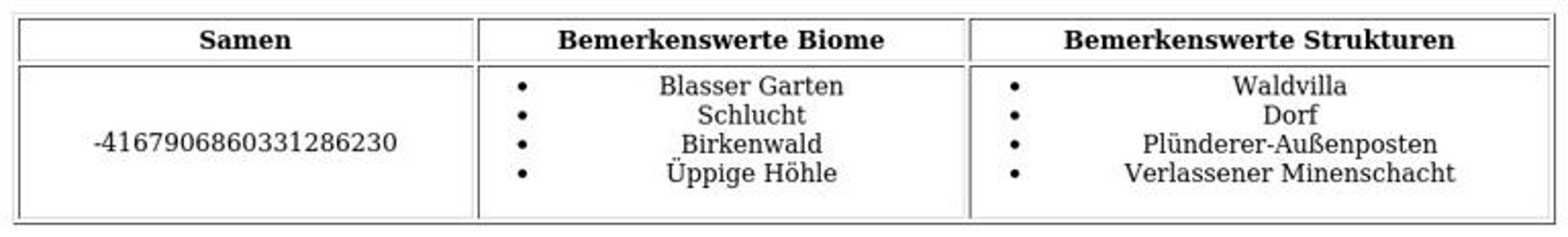 Besonders vorteilhaft sind Seeds, bei denen die Pale Gardens in der Nähe wichtiger Strukturen liegen, was den Überlebensmodus erleichtert. Ob als unmittelbarer Ausgangspunkt oder als verstecktes Juwel im Gelände – diese Seeds bieten eine ideale Kulisse für kreative Bauprojekte und spannende Abenteuer.