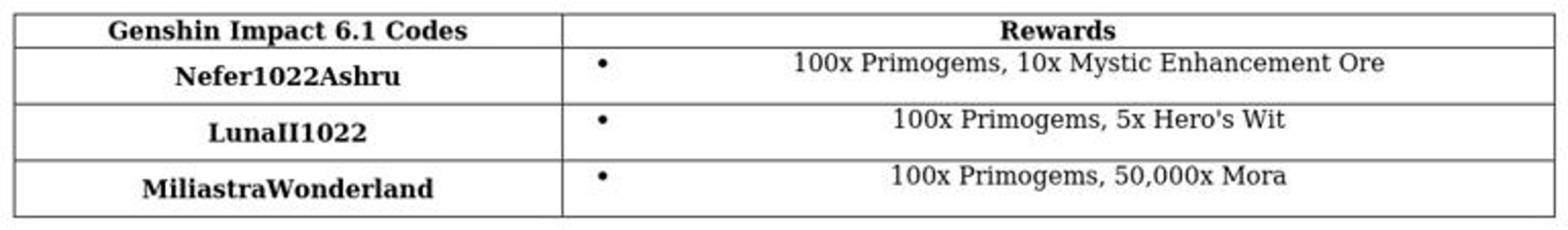 During the 6.1 update livestream, viewers received special codes that can be redeemed for free Primogems, totaling 300. Make sure to use these codes promptly to maximize your in-game rewards before the update drops.