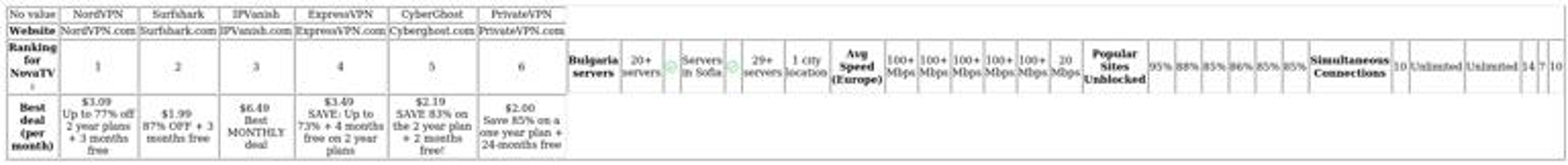Final assessment confirms excellent performance for international streaming needs Unblocks NovaTV Tested Oct 2025Boasting an extensive global network, CyberGhost places over 10,000 servers across more than 100 nations, with multiple options readily available within Bulgaria itself.