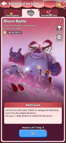 Participants need to be at least Furnace Level 12 to join the event. The elusive Rosarion appears unpredictably in the wilderness, requiring all leaders and players from your region to coordinate their efforts in defending the precious roses. Each strike against the creature consumes one attack chance; you are allotted five attacks daily. Any unused attempts will not carry over to the next day, so timely participation is essential.