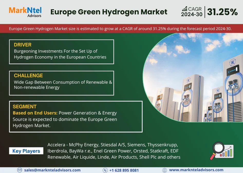 MarkNtel Advisors, a leading market research and consulting firm, has announced the release of its latest study titled “Europe Green Hydrogen Market Analysis, 2024-2030.”