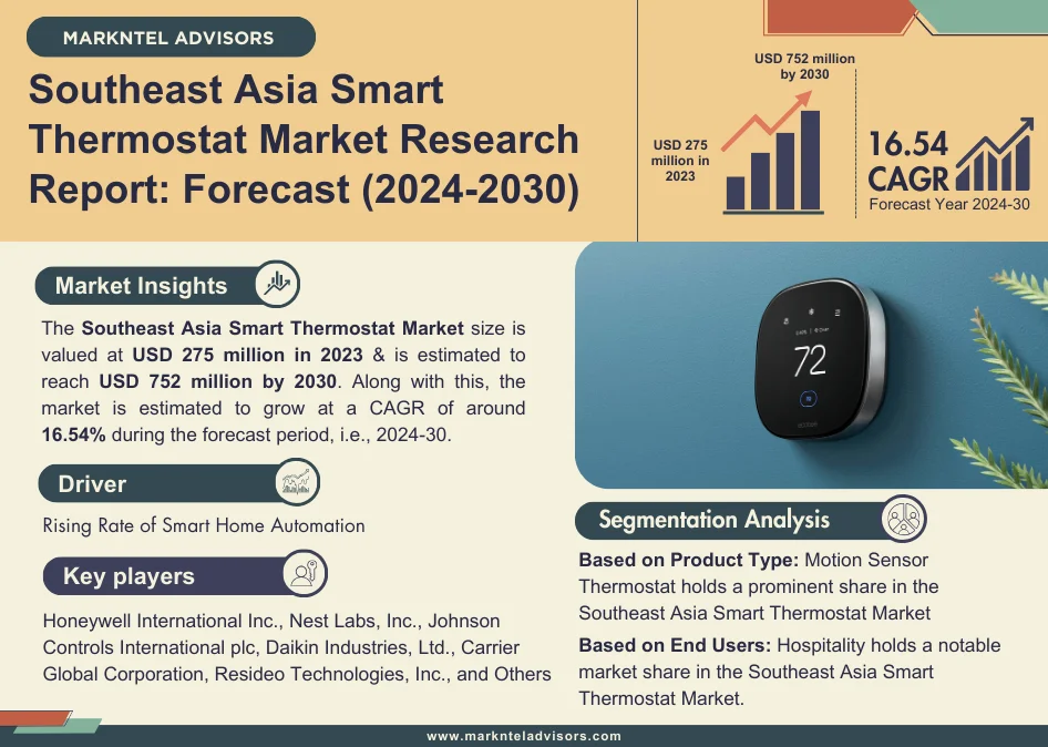 MarkNtel Advisors, a leading market research and consulting firm, has announced the release of its latest study titled “Southeast Asia Smart Thermostat Market Analysis, 2024-2030.”