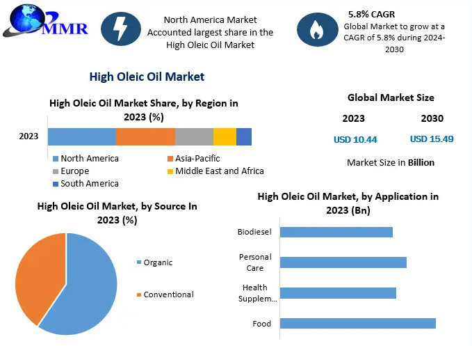 The global High Oleic Oil Market is witnessing strong and consistent growth, supported by rising consumer demand for healthier edible oils and the expanding use of high-performance oils in industrial applications. The market, valued at USD 10.44 billion in 2023, is anticipated to reach USD 15.49 billion by 2030, registering a CAGR of 5.8% throughout the forecast period.
