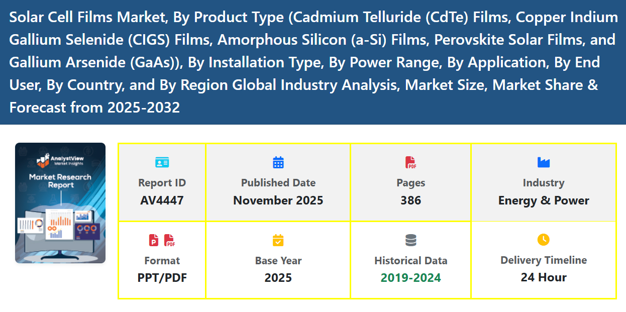 The Solar Cell Films Market is expanding rapidly as the solar industry moves toward lighter, more flexible, and higher-efficiency materials. Solar cell films—often used in thin-film photovoltaic technologies such as amorphous silicon, cadmium telluride (CdTe), and CIGS—offer significant advantages over traditional crystalline solar panels. These films feature a lightweight structure, design flexibility, lower production costs, and strong performance under diffuse or low-light conditions. As renewable-energy adoption accelerates worldwide, solar cell films are gaining traction in a variety of applications, including building-integrated photovoltaics (BIPV), portable solar devices, solar windows, and off-grid energy systems.