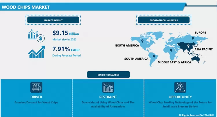 The Global Wood Chips Market Size Was Valued at USD 9.15 Billion in 2023 and is Projected to Reach USD 18.15 Billion by 2032, Growing at a CAGR of 7.91 %.
