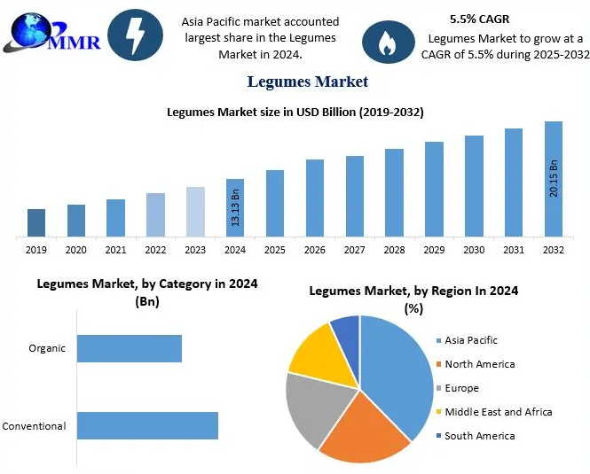 The global legumes market is set for consistent long-term growth, driven by rising health awareness, expanding plant-based food consumption, and increasing demand for sustainable agricultural products. Strong growth in Asia-Pacific, combined with innovation in food processing and agricultural technology, is expected to create significant opportunities across the value chain. With their nutritional, economic, and environmental benefits, legumes are positioned as one of the most important crops shaping the future of the global food system.