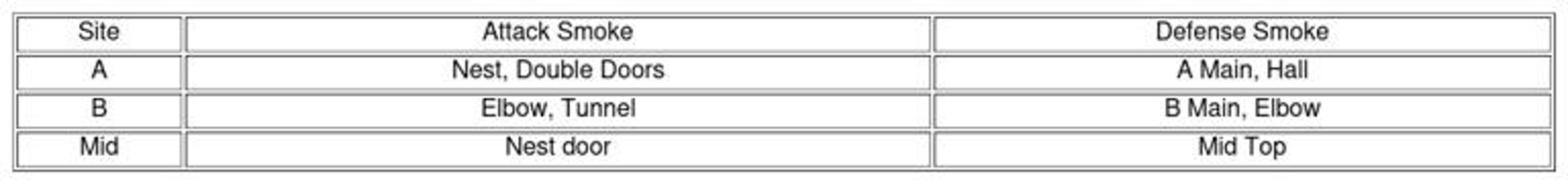Les stratégies varient en fonction du site et du point d'entrée. La configuration ouverte de la carte rend l'utilisation de fumigènes mal placés particulièrement risquée.