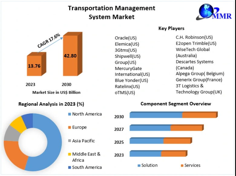 The Transportation Management System (TMS) Market was valued at US$ 13.76 billion in 2023 and is projected to grow at a CAGR of 17.6%, reaching approximately US$ 42.80 billion by 2030. Driven by the increasing complexity of supply chains, rising customer expectations, and the need for operational efficiency, TMS solutions are becoming indispensable for businesses across industries.