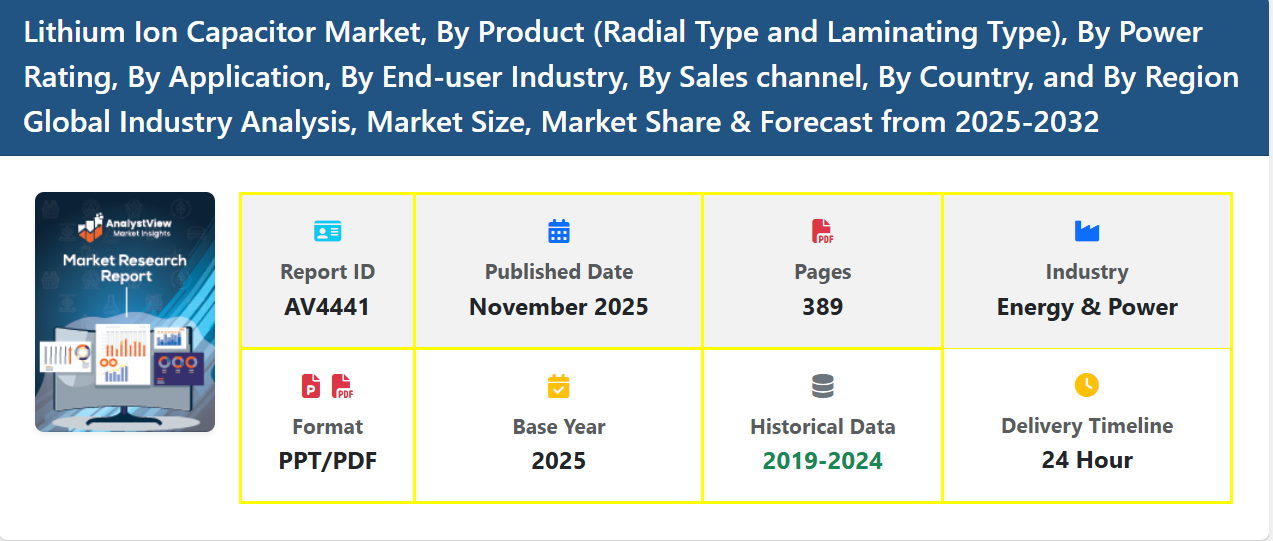 Global Lithium Ion Capacitor Market Size and Share with Growth, Demand Trends and Forecast