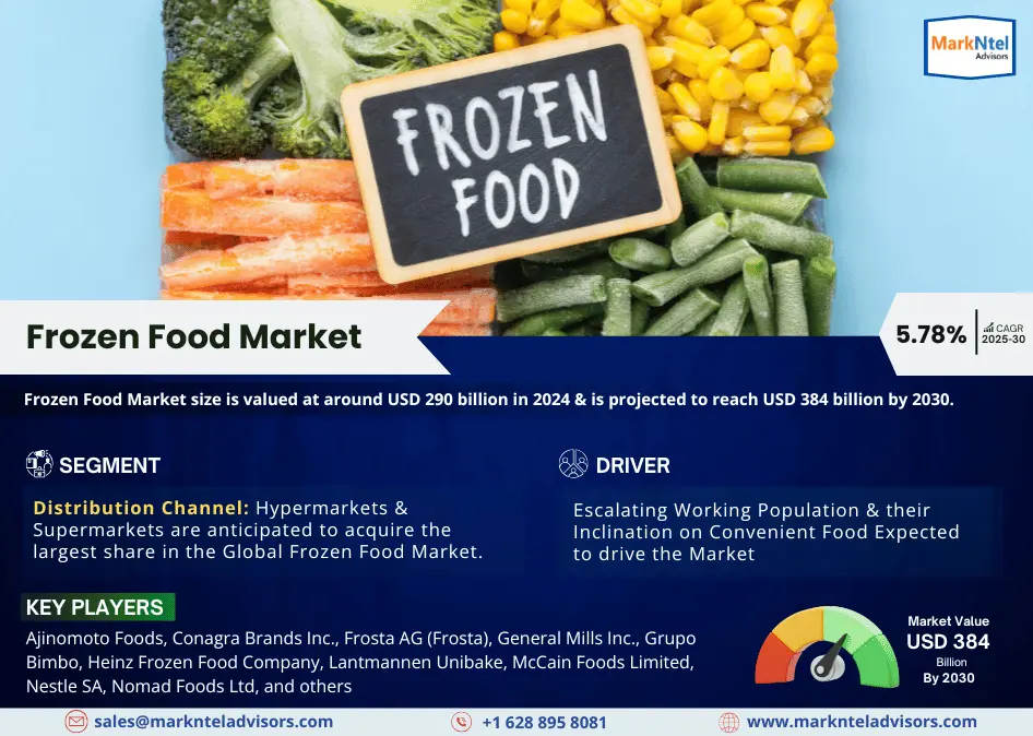 MarkNtel Advisors, a leading market research and consulting firm, has announced the release of its latest study titled Frozen Food Market Research Report: Forecast (2025–2030). This report provides a detailed assessment of the Frozen Food Market, covering its evolving dynamics, emerging trends, key growth drivers, major challenges, and competitive landscape.