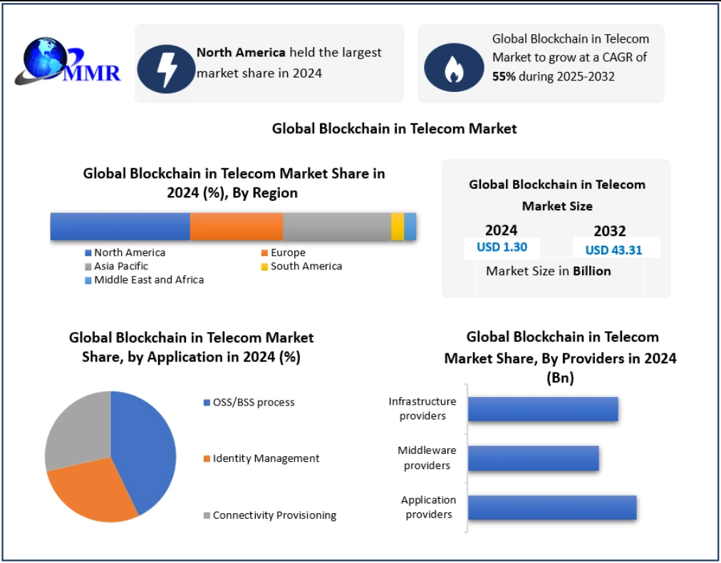 The global blockchain in telecom market is poised for transformative growth as telecom operators increasingly adopt decentralized technologies to address security, transparency, and efficiency challenges. With strong momentum across OSS/BSS processes, identity management, and connectivity provisioning, blockchain is expected to become a foundational technology in next-generation telecom networks through 2032.