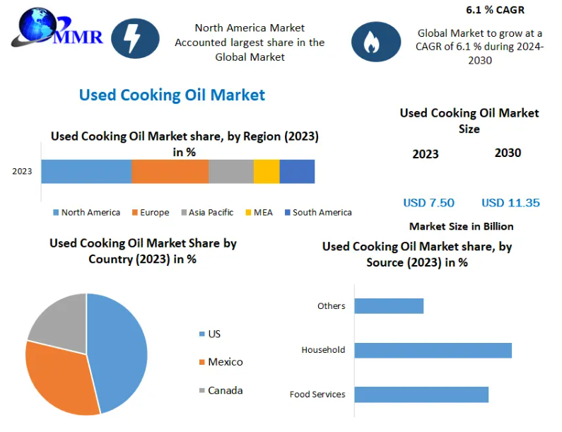 The Global Used Cooking Oil Market is experiencing strong expansion as governments and industries prioritize circular economy practices and renewable fuel adoption. The market was valued at about USD 7.50 billion in 2023 and is projected to reach approximately USD 11.35 billion by 2030, reflecting a CAGR of around 6.1% during the forecast period.