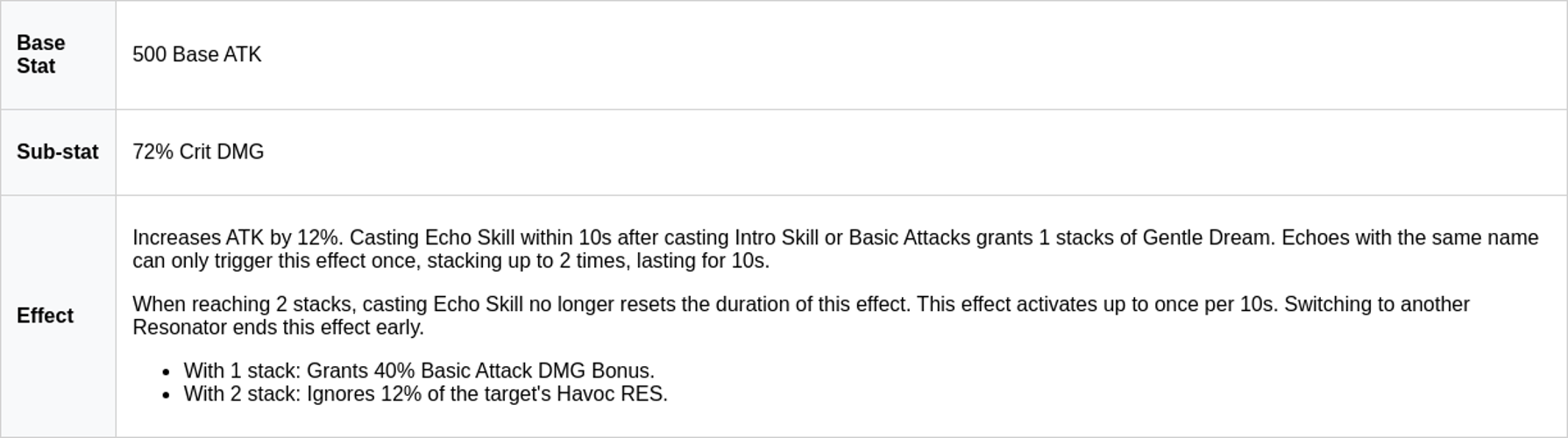 Fusion Accretion stands out as an excellent 4-star weapon choice for Cantarella, thanks to its ability to provide a solid increase in her base Attack. In addition to the base Attack boost, the weapon’s sub-stat offers valuable Attack Percentage, further enhancing her damage output. Its unique effect also generates energy for Cantarella, enabling her to recharge more efficiently during battles. This energy regeneration allows her to execute her skill rotation swiftly and unleash her resonance liberation more often, maximizing her overall combat effectiveness.