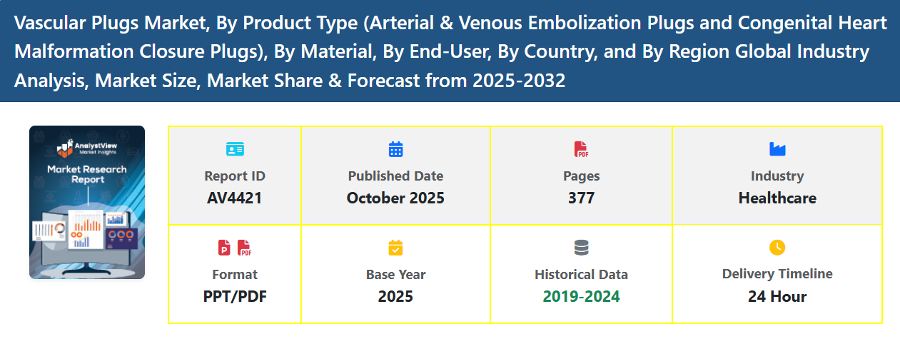 The Vascular Plugs Market is experiencing steady growth driven by advancements in minimally invasive cardiovascular procedures and the rising prevalence of vascular diseases. Vascular plugs are specialized medical devices used to occlude or block abnormal blood flow in blood vessels. They are widely applied in procedures such as embolization, treating congenital heart defects, managing aneurysms, and controlling blood loss during complex surgeries. Compared to traditional surgical methods, vascular plugs provide greater precision, reduced procedural time, and faster patient recovery—critical advantages that continue to boost their adoption in modern healthcare.