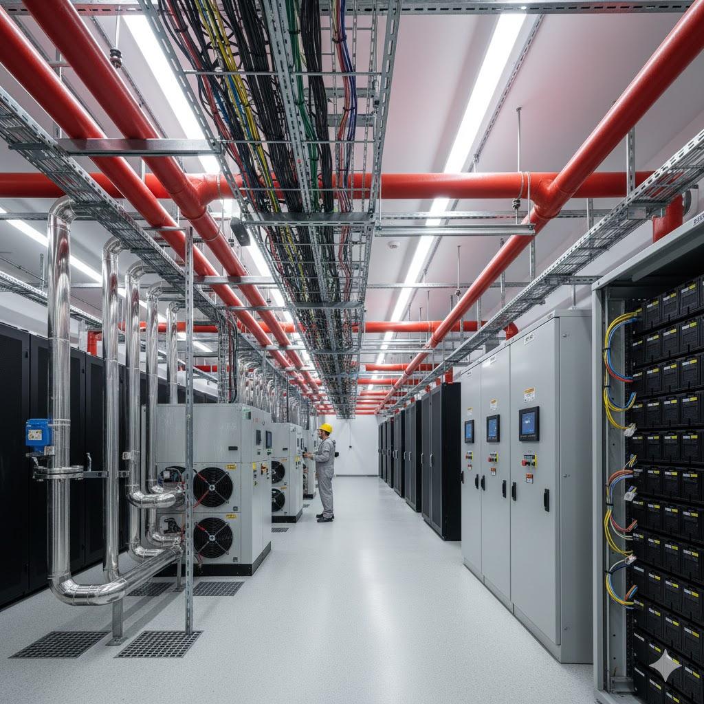 • Cooling and Thermal Management: Precision HVAC systems, liquid cooling solutions, and advanced airflow management to maintain optimal operating temperatures, minimize energy consumption, and support high-density racks.