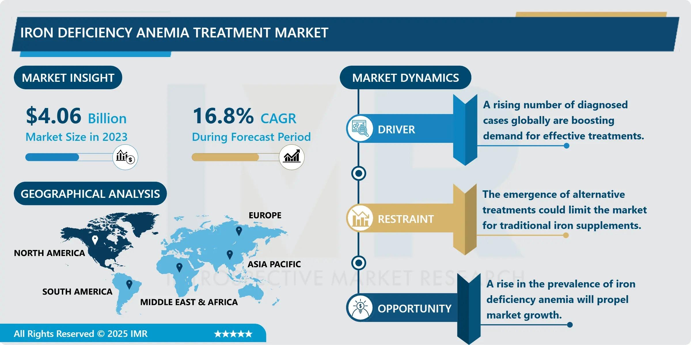 “According to a new report published by Introspective Market Research, Iron Deficiency Anemia Treatment Market by Treatment Type, Route of Administration, and End User, The Global Iron Deficiency Anemia Treatment Market Size Was Valued at USD 4.06 Billion in 2023 and is Projected to Reach USD 13.99 Billion by 2032, Growing at a CAGR of 16.8% from 2024–2032.”