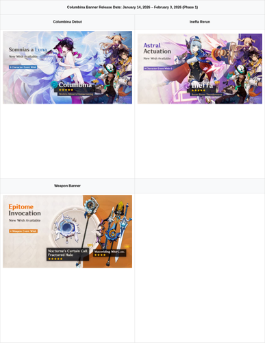 In Genshin Impact version 6.3, players will have the chance to explore Columbina's first banner, which runs concurrently with the rerun of Ineffa. The banners highlight several 4-star characters available with increased chances to obtain. These featured units include: