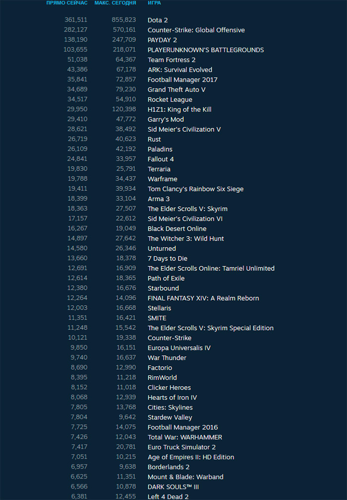 Что касается игр с наибольшим количеством активных игроков на сегодняшний день, список остается актуальным и продолжает демонстрировать популярность классики и новинок жанра.