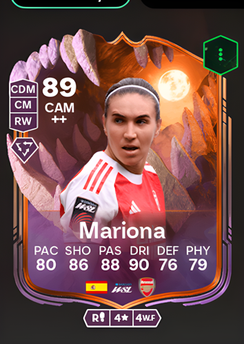 María Francesca Caldentey Oliver's Ultimate Scream card arrives as a formidable Central Attacking Midfielder, boasting an impressive overall rating of 89. With standout attributes including 90 dribbling, 88 passing, and 86 shooting, complemented by a solid 80 pace, she is engineered to be the creative heartbeat of any squad. Her profile as a sharp attacking playmaker allows her to dictate the tempo in the final third, expertly threading passes to tear apart defensive lines and seizing opportunities to score decisive goals that can seal victory in any match.