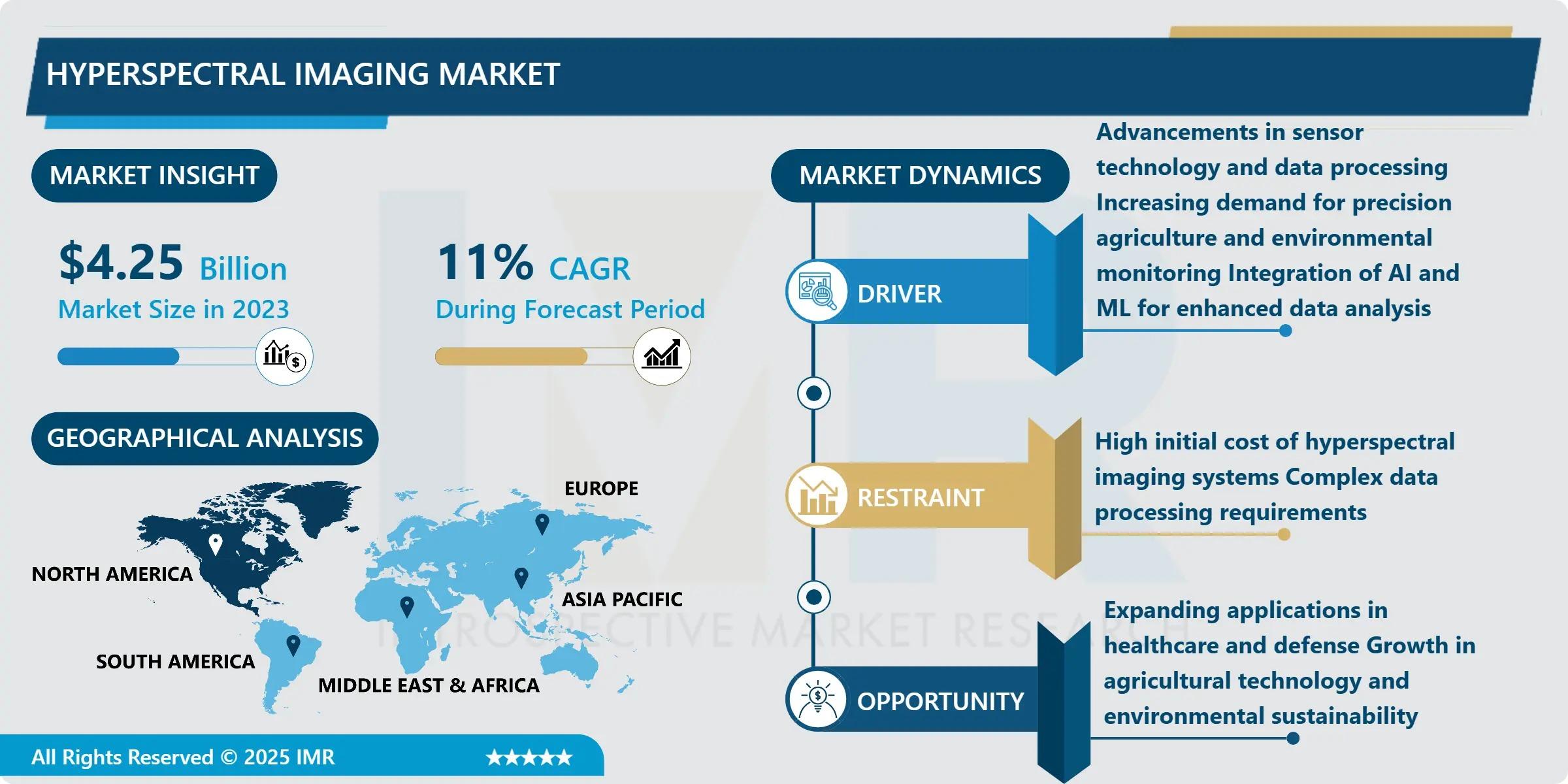 “According to a new report published by Introspective Market Research, titled, Hyperspectral Imaging Market by Component, Application, and End-Use Industry, The Global Hyperspectral Imaging Market Size Was Valued at USD 4.25 Billion in 2023 and is Projected to Reach USD 10.87 Billion by 2032, Growing at a CAGR of 11% From 2024–2032.”