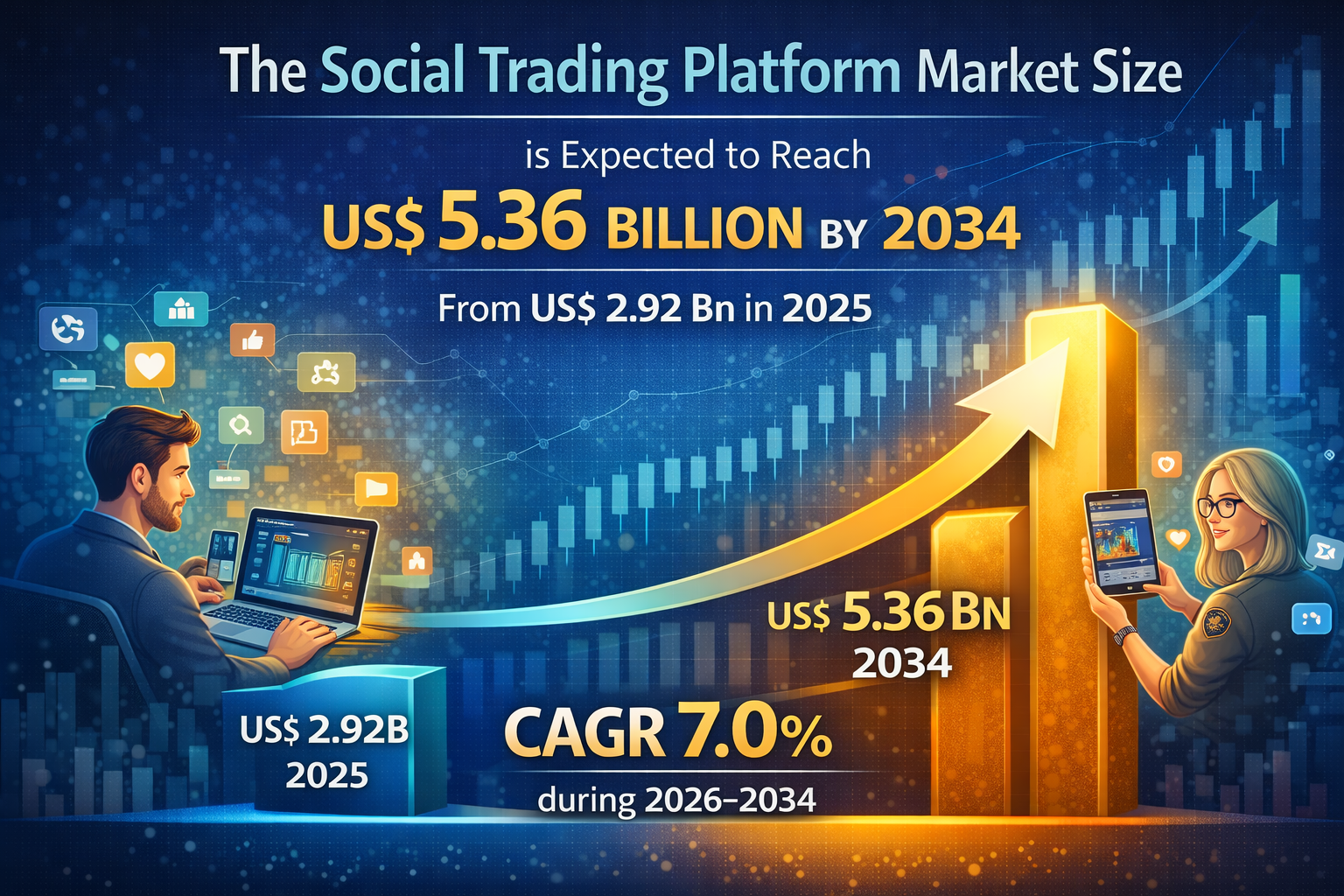 Social Trading Platform Market CAGR 7.0% Growth Driving US$ 5.36 Billion Value by 2034