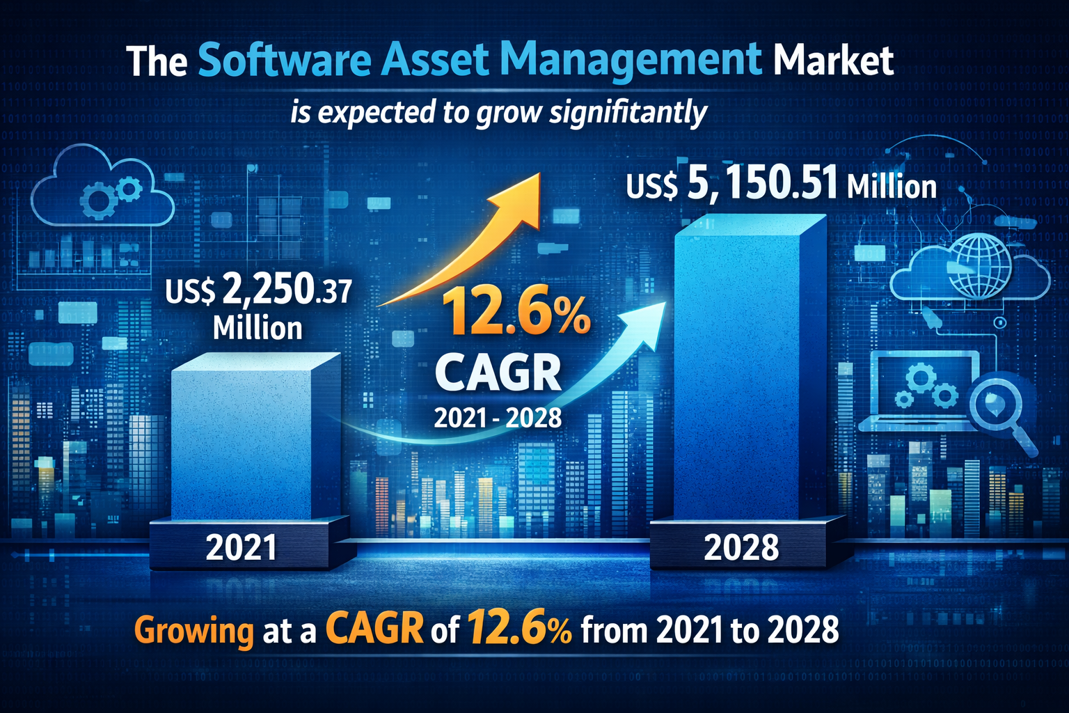 The Software Asset Management Market is experiencing strong growth as organizations increasingly depend on complex software ecosystems to run daily operations. The market, valued at US$ 2,250.37 million in 2021, is projected to reach US$ 5,150.51 million by 2028, expanding at a CAGR of 12.6% . Software Asset Management, commonly known as SAM, refers to the structured approach used to acquire, deploy, manage, maintain, and retire software assets efficiently within an organization. It plays a critical role in ensuring compliance with licensing agreements, preventing unnecessary spending, and improving visibility across IT environments. As digital transformation accelerates across industries, businesses are prioritizing SAM solutions to control software usage, reduce risks associated with license violations, and manage growing software portfolios.