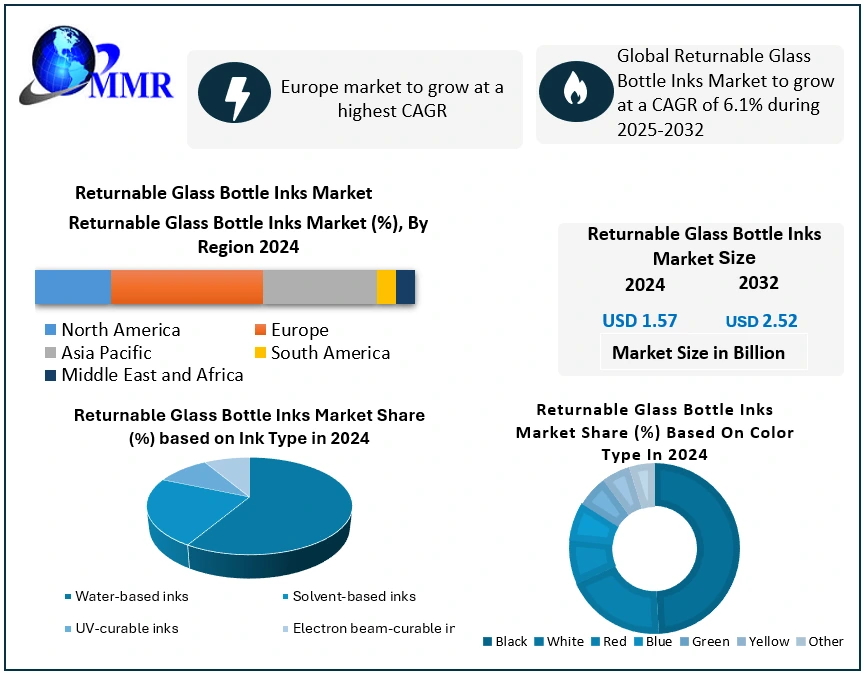 Global Returnable Glass Bottle Inks Market is witnessing steady growth as industries increasingly adopt eco-friendly packaging solutions and circular economy practices. According to the latest market research analysis, the Returnable Glass Bottle Inks Market size was valued at USD 1.57 billion in 2024 and is projected to grow at a compound annual growth rate (CAGR) of 6.1% from 2025 to 2032, reaching approximately USD 2.52 billion by 2032. The growth is largely fueled by rising environmental awareness, regulatory pressure to reduce single-use packaging, and the expansion of returnable bottle systems in the beverage industry.