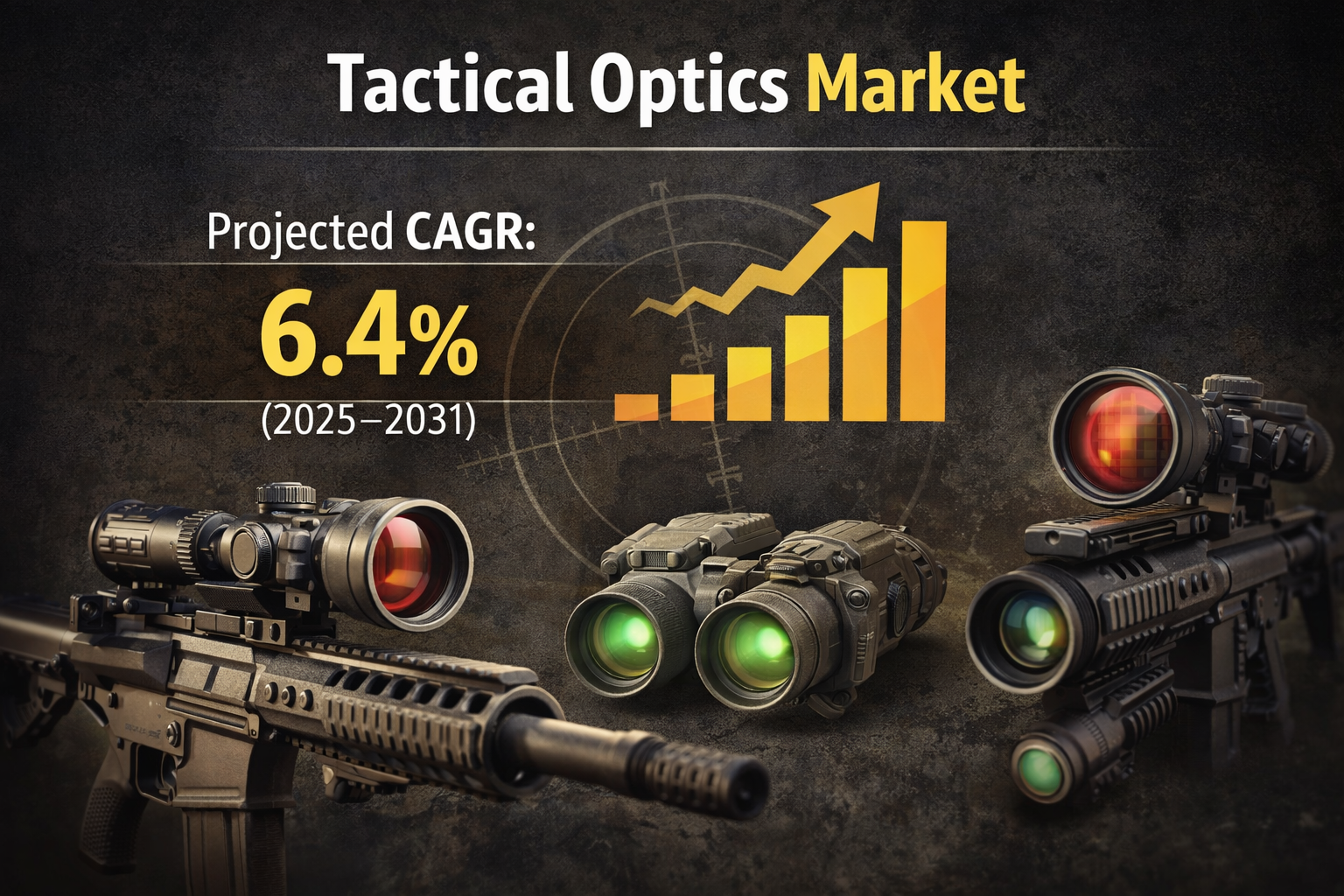 The Tactical Optics Market is projected to register a CAGR of 6.4% from 2025 to 2031, reflecting stable growth driven by increased defense spending and ongoing military modernization programs. Governments worldwide are investing in advanced targeting systems and surveillance technologies to strengthen national security capabilities. These developments are shaping the overall Tactical Optics Market Outlook, as armed forces increasingly adopt innovative optics solutions to improve battlefield awareness and operational precision.