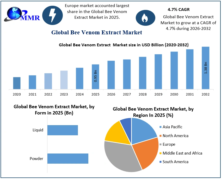 The global Bee Venom Extract Market is witnessing consistent growth, fueled by its increasing adoption across pharmaceutical and cosmetic industries. Valued at USD 0.95 billion in 2025, the market is projected to reach nearly USD 1.38 billion by 2032, expanding at a CAGR of 5.4% during the forecast period. The rising interest in natural bioactive compounds, coupled with advancements in extraction technologies, is significantly contributing to the market’s upward trajectory.