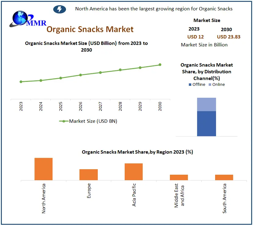 The Global Organic Snacks Market was valued at USD 12 billion in 2023 and is projected to expand at a CAGR of 10.3% from 2024 to 2030, reaching approximately USD 23.83 billion by 2030, according to recent industry analysis. The market is witnessing strong momentum driven by increasing consumer preference for natural, non-GMO, and health-oriented snack alternatives, along with the global shift toward sustainable and organic food consumption patterns.