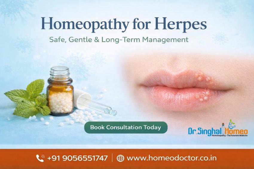 Natural Hope: Exploring Homeopathic Treatment for Herpes Herpes is a common viral infection that leads to painful blisters or sores, usually appearing around the lips (oral herpes) or genital area. Proper management is important to reduce discomfort and control recurring outbreaks. Dr. Vikas Singhal, with 23 years of clinical experience, offers individualized homeopathic medicine for herpes at Dr. Singhal Homeo Clinic in Chandigarh. The treatment plan is designed according to the patient’s symptoms, frequency of outbreaks, and overall health condition. Homeopathy focuses on relieving pain and itching, promoting faster healing of lesions, and reducing the chances of future recurrences through immune support. This natural and non-invasive approach aims to manage herpes safely and gently without harmful side effects. For consultation or personalized treatment, contact +91 9056551747 via call or WhatsApp. #hepreshomeopathy